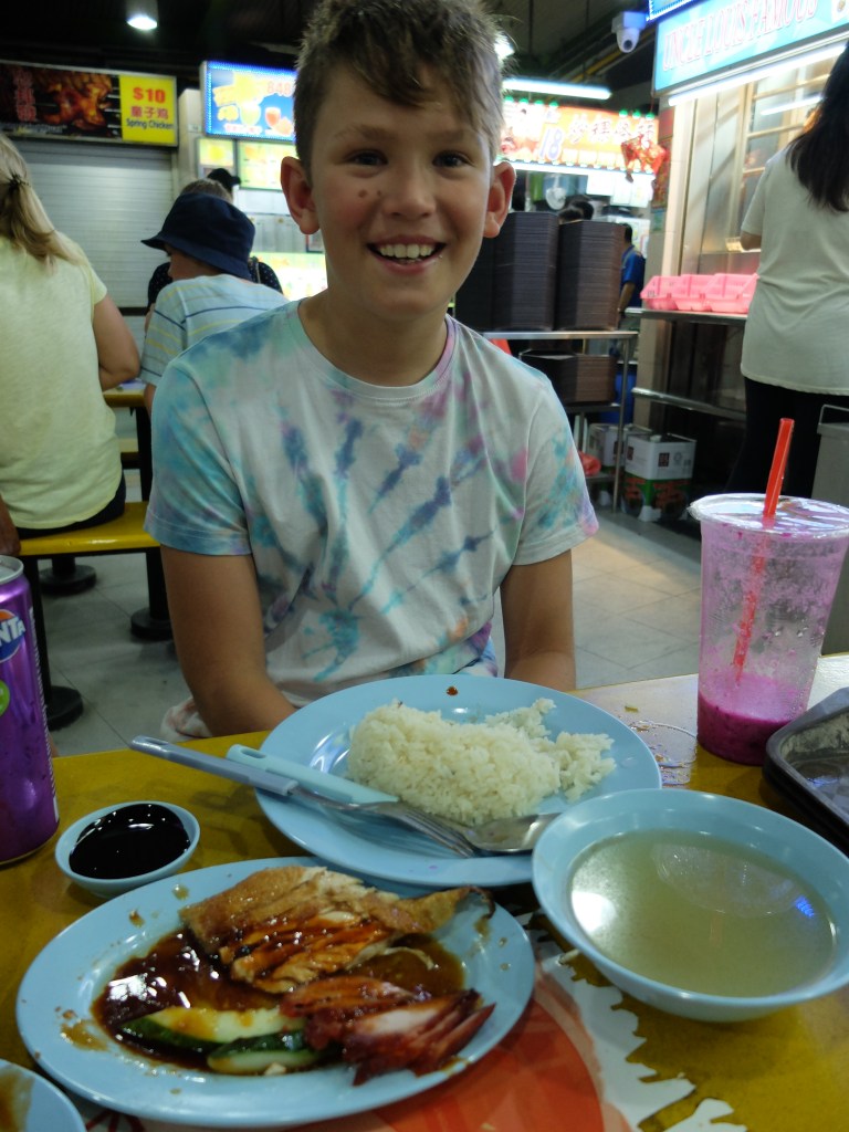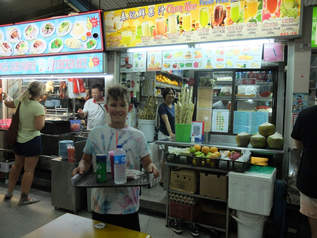 The kids and I tried out the local hawker centre by the river one night when Gareth was working late. Classic chicken and rice from one stall and drink from another, Ben opted for a Dragonfruit/Soursop. It was quite fascinating sitting there watching the sugarcane being squeezed into juice. I like the street food, Ben will try everything but Bea really has to be in the right mood for it.