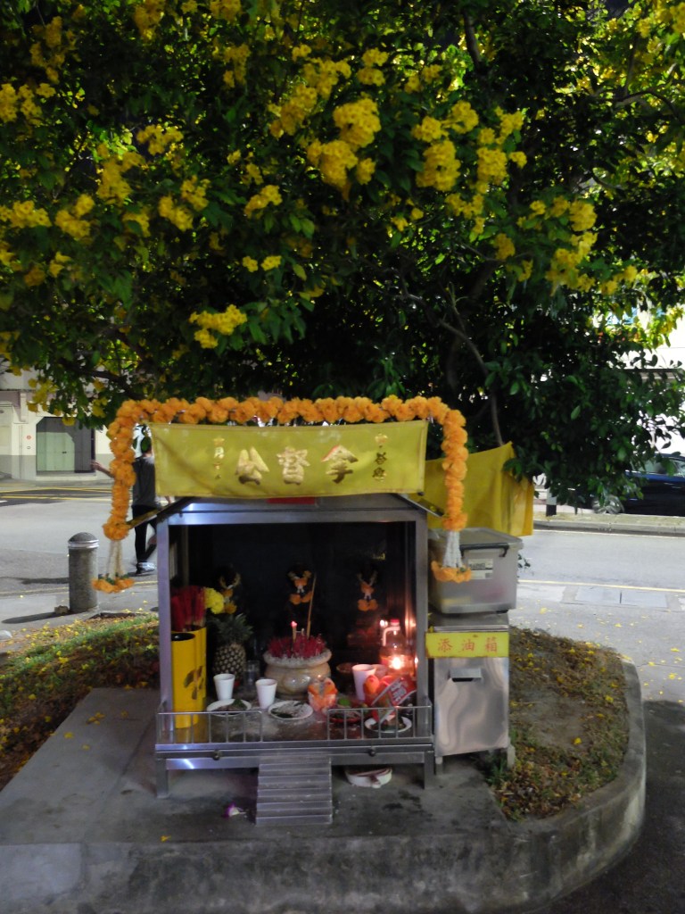 Now it’s “Hungry Ghost Festival” (also known as Zhong Yuan Jie in Chinese), when the souls of the dead are believed to roam the earth. The Chinese put out offerings for the hungry ghosts and burn paper replicas of things the ghosts may need in the afterlife (if you don’t the ghosts can get up to mischief). We’ve spotted offerings of food placed outside houses and there are bins put out too, where you can burn the paper money and replicas. I think we’ll see a lot more of this in the days to come!