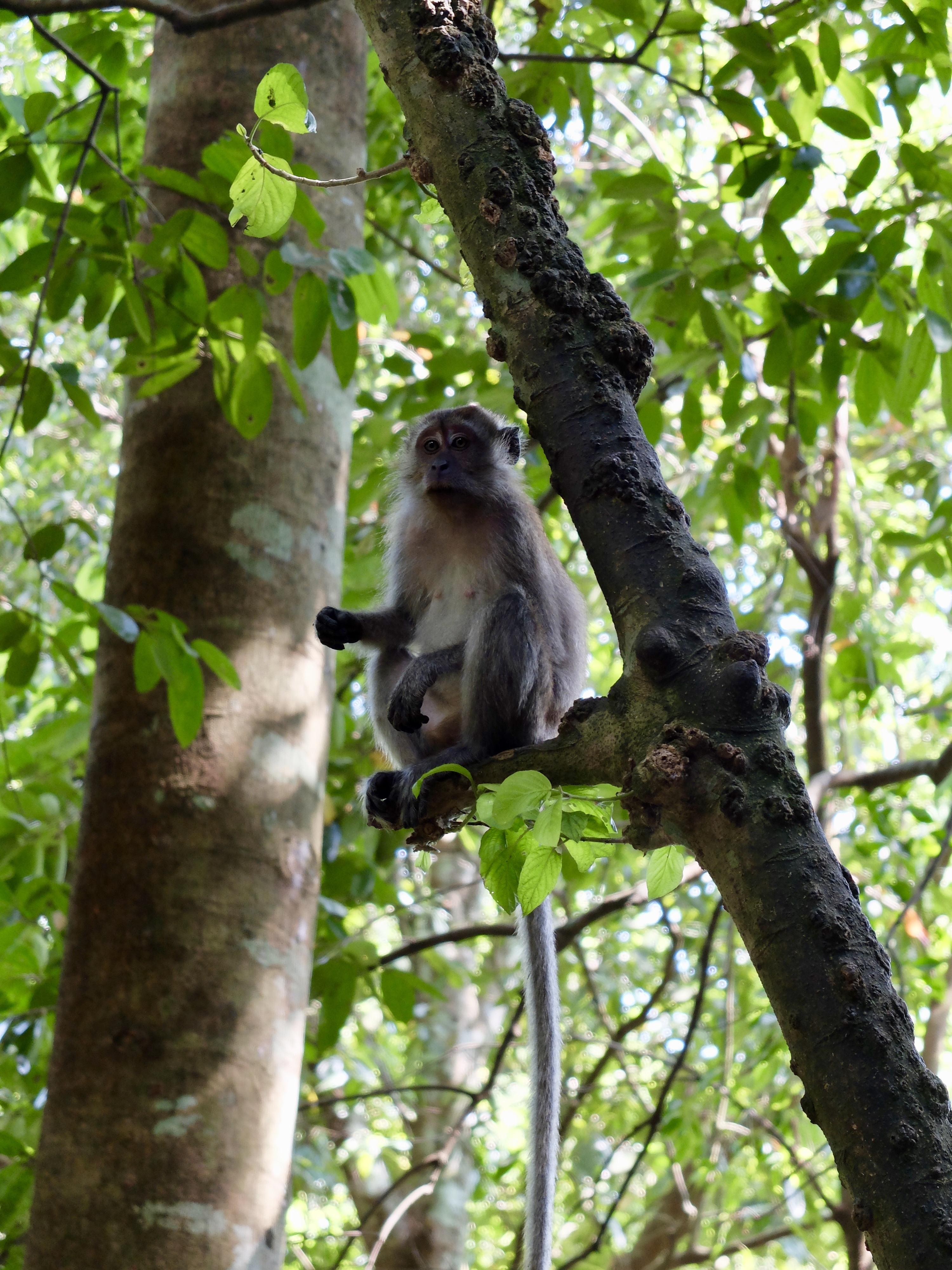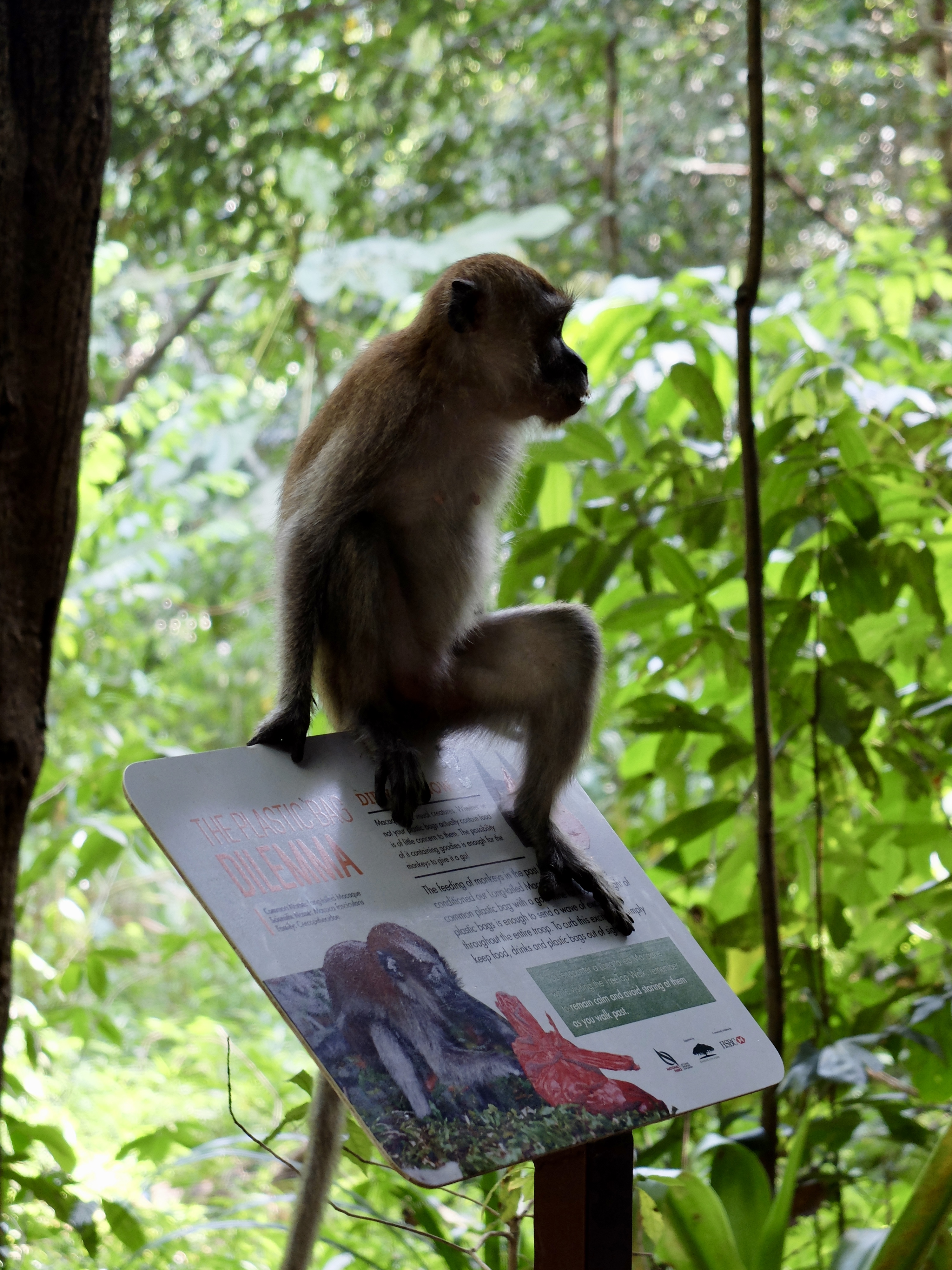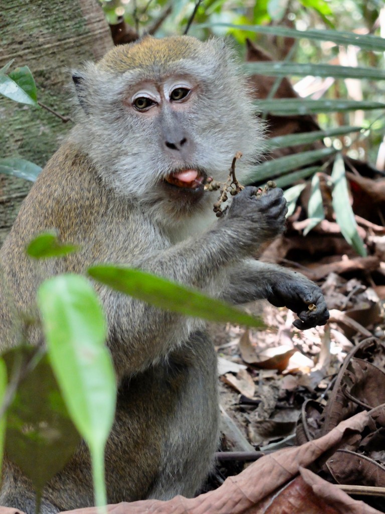 There are a lot of monkeys, Macaques, at the entrance to the tree top walk and they even climb around on the railings. The advice is to keep your bags zipped up and to not show any food items as these cheeky monkeys will definitely steal whatever they like. They are incredibly funny to watch with their humanlike mannerisms. We saw one finding a grape on the floor and he cleaned it with his hands before eating it. Another had stolen a pack of crackers and was casually munching on them sitting on a branch.