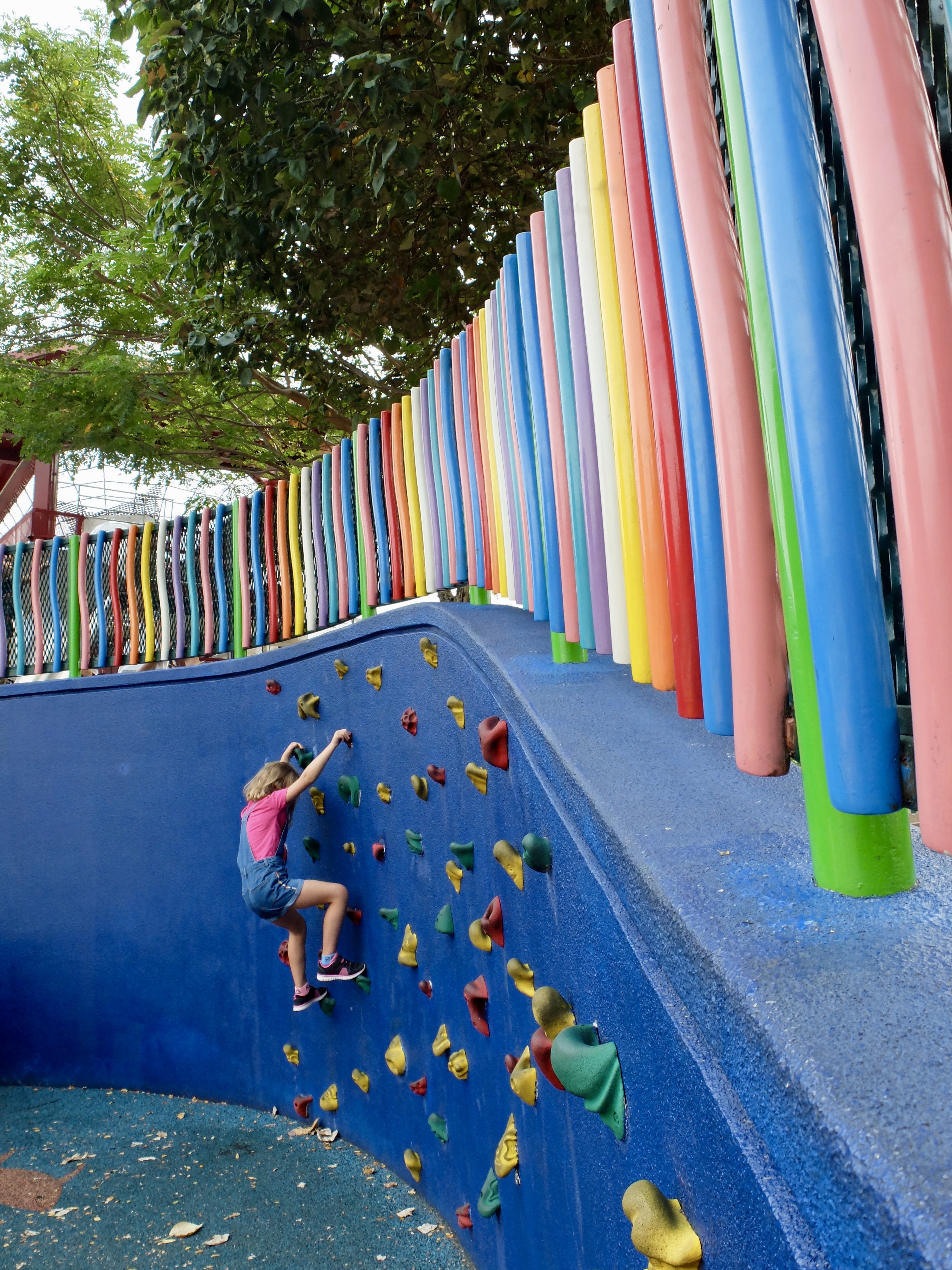 The beach is beautiful, sadly I don’t think you can swim here. There are hundreds of big boats on the horizon waiting to unload in the port, not sure what that’ll do to the quality of the water. The cycle lane follows the beach for miles and miles, all the way to the airport I think. There are places everywhere to stop for a picnic or exercise, there’s a really cool playground at Marina Cove and a skatepark with big concrete bowls etc. Such an easy way to have an active life!