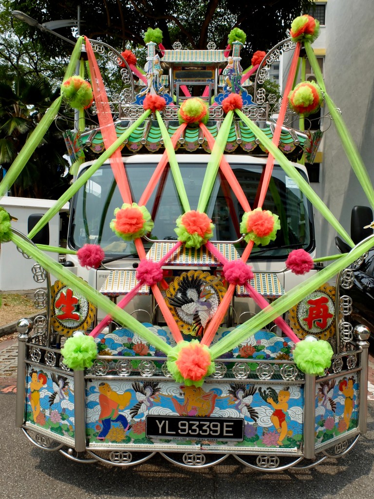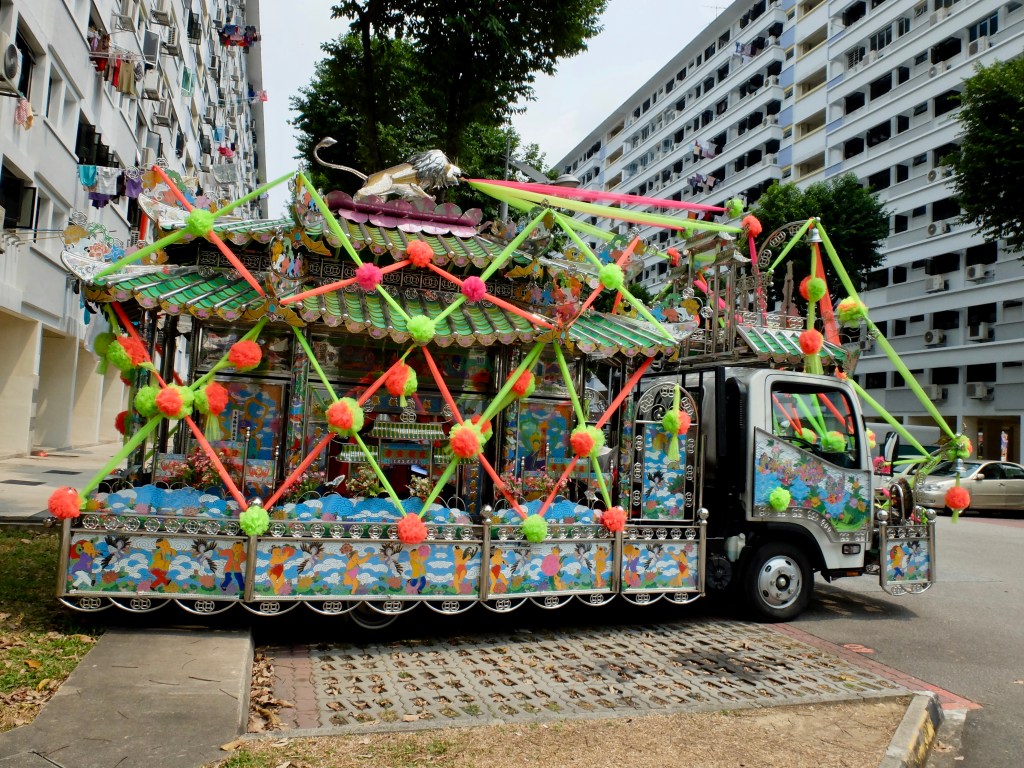 Above are some pics from yesterday, I went into Marine Parade to do some shopping. There are some gorgeous old Peranakan shophouses along the road, so colourful. The crazy bus was parked in the HDB here, like most things there I haven’t got a clue. There is a tent erected where I think there is a funeral, it’s been going on for days and people are sat in the tent eating and chanting. Also, I think some sort of festival is coming up “mid Autumn festival” but I’m not sure what this entails, I’m wondering if the decorated bus is part of that…or is it part of the funeral? If it is, I’m signing up! That’s what I want my hearse to look like too!